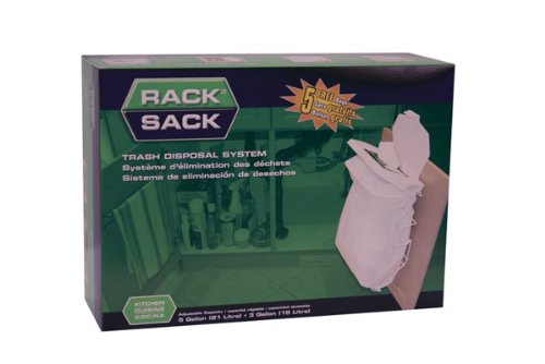 The Rack Sack 5 Gallon Trash Bags are designed for use with the Rack Sack Kitchen Trash Container System. These bags fit equally well with the trash container systems 3 gallon and 5 gallon size configurations. The trash liners are leak resistant and include handle ties as well as an odor guard to help keep your home smelling fresh. The 100 count refills come in four 25 count bundles which fit in the trash bag storage compartment of the rack sack lid. The packaging has changed from the box as shown which holds the 25 count bundles to a clear plastic bag with dispenser hole. This package will still fit conveniently in the lid of the trash container systems. Rack Sack 5 Gallon Trash Bags 100 Count Features Durable and leak resistant. Convenient handle ties make trash disposal easy. Odor guard helps keep your home smelling fresh. Bags fit equally well with the kitchen trash container systems 3 gallon and 5 gallon sizes. The 100 count refills come in four 25 count bundles.